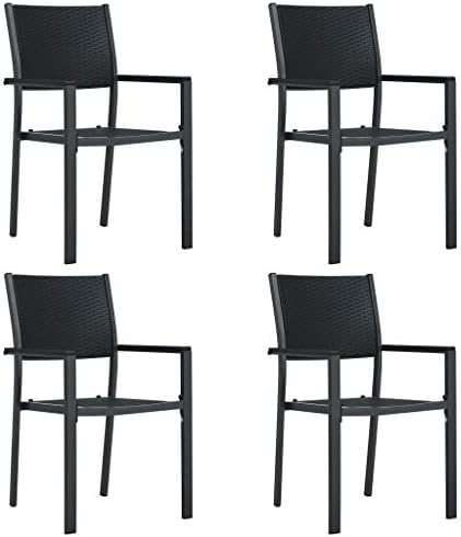 AIJUUKJP Nice Outdoor Nice Outdoor Asientos al aire libre Sillas de jardín 4 piezas de plástico negro aspecto de ratán