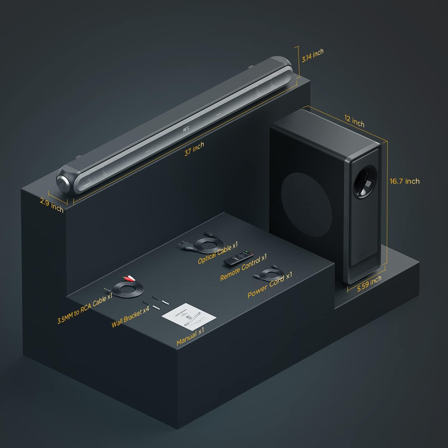 Salida potente de 240 W: use el subwoofer inalámbrico para experimentar el sonido retumbante del temblor de la tierra, y use 4 controladores de rango medio a alto de 2.25 «para reproducir frecuencias medias a altas con una claridad encantadora. Se puede reproducir una distorsión armónica total de <0.5% Verdadero Los controladores de canal izquierdo y derecho crean un campo de sonido un 40% más amplio que las sondas tradicionales, replicando un campo de sonido amplio que coincide con el tamaño de la pantalla del cine
