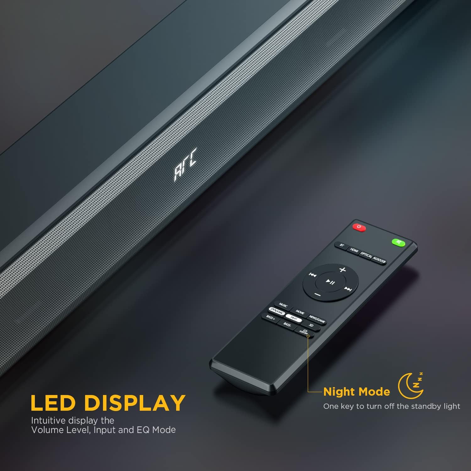 Un control remoto y modo nocturno: reducen el problema de usar múltiples controles remotos. Solo un control remoto puede administrar las funciones de la barra de sonido, como el encendido y el volumen. La barra de sonido Bomaker tiene múltiples opciones de puertos y cables, incluido un puerto HDMI ARC, que permite una conexión súper fácil con cualquier dispositivo para obtener la más alta calidad de audio y video. La pantalla LED intuitiva le permite ver fácilmente el volumen, la entrada y el modo EQ. Una tecla para apagar la luz de espera sin distracciones