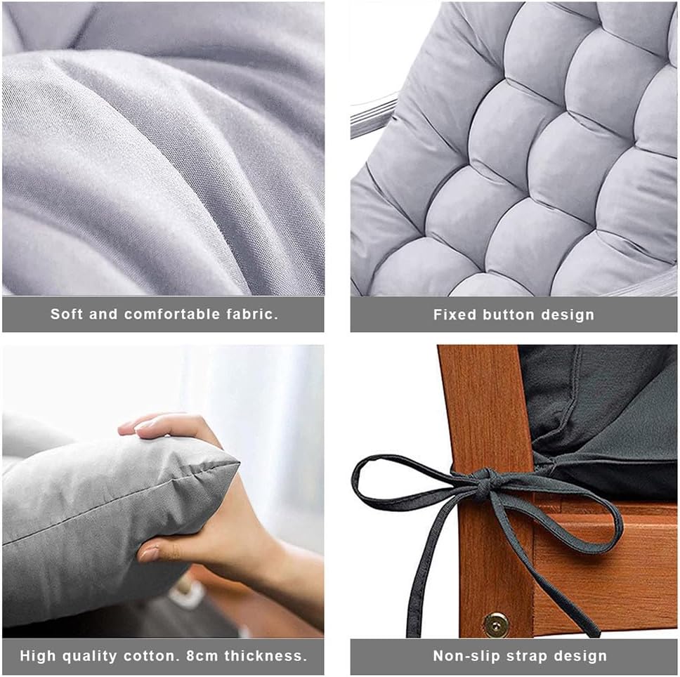 Almohadilla de banco antideslizante: cada cojín está equipado con correas fijas, que pueden fijar el cojín a la silla y evitar que el cojín se resbale o se caiga. Limpia suavemente o lava a mano la tela de amortiguación al aire libre con un detergente suave y agua fría, luego deja que el cojín se seque al aire. No lavable a máquina.