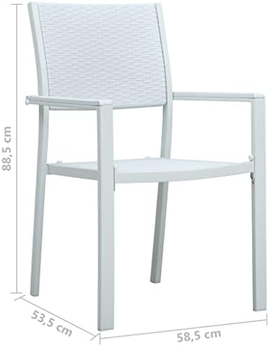 Sillas de jardín al aire libre 4 piezas de plástico blanco con aspecto de ratán > Muebles de exterior > Asientos al aire libre > Sillas de exterior Nuestras sillas de plástico duraderas serán una gran adición a tu jardín, terraza o patio. Las sillas de comedor para exteriores están hechas de plástico duradero, lo que las hace resistentes a la intemperie y fáciles de limpiar. Su diseño de aspecto de ratán añade un toque de encanto natural a tu espacio de vida al aire libre. Con un marco de acero resistente, el juego de sillas es muy estable. Además, las sillas son ligeras y fáciles de mover. Incluye 4 sillas.