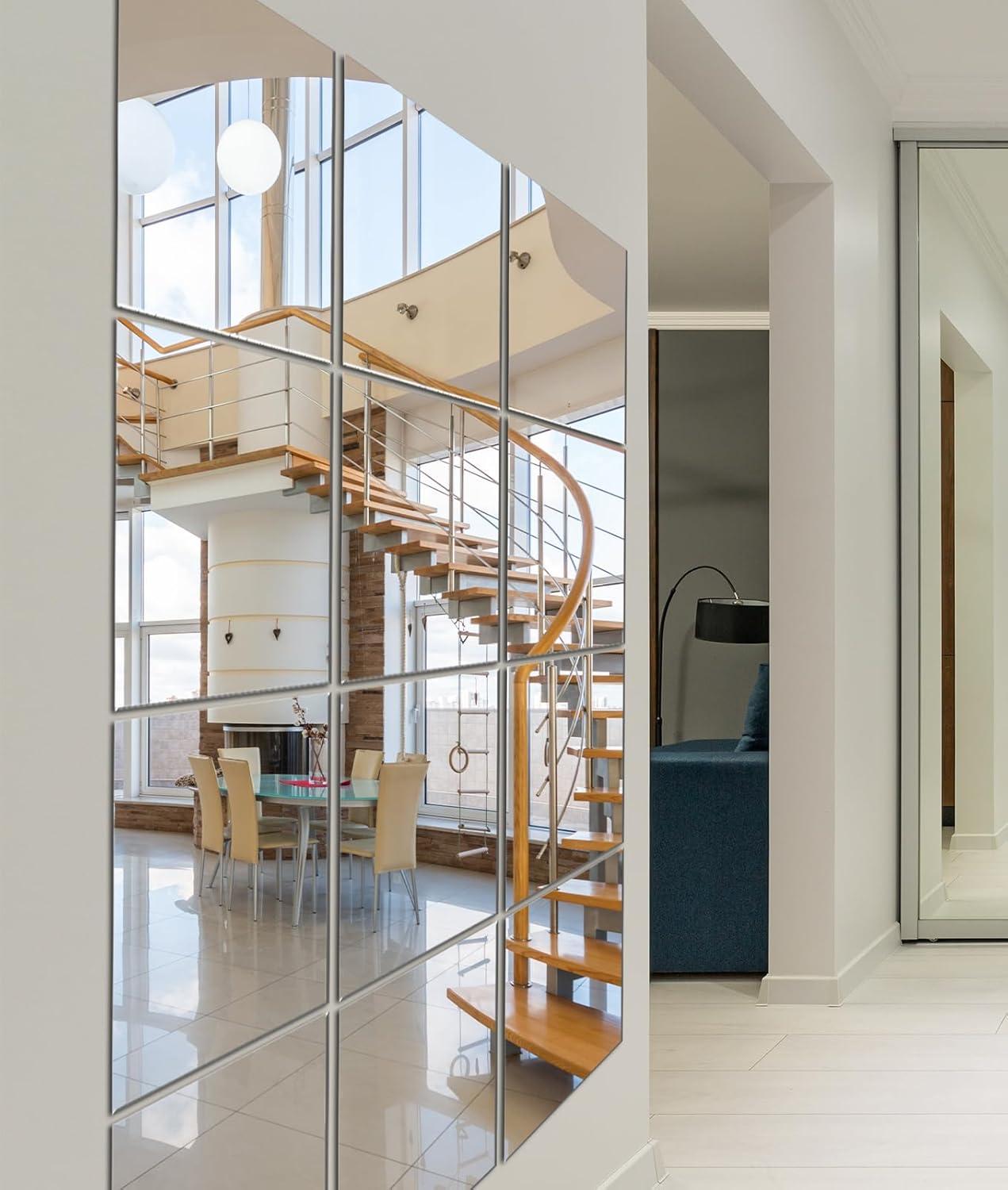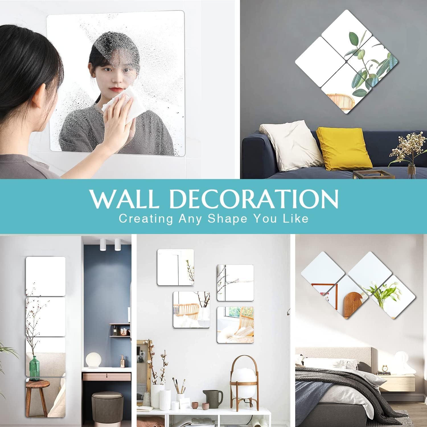 【Espejo de cuerpo entero práctico】Estas pegatinas de pared de espejo de vidrio pueden reflejar imágenes reales y de alta definición, puede ensamblar en un espejo largo vertical y pegarlo en la puerta o pared del armario, se puede usar como un espejo de cuerpo entero, Adecuado para puertas de armarios, vestidores, pasillos, dormitorios, salas de estar, baños, maquillaje, gimnasios, oficinas, etc.