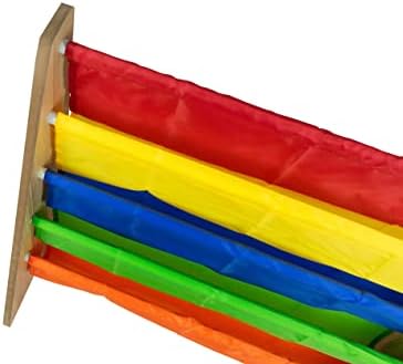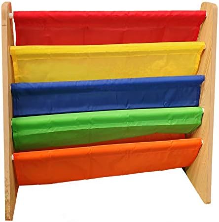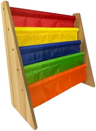 Esta estantería para niños está hecha de un marco de MDF laminado de madera natural con varillas de acero resistentes diseñadas para durar. Estantería de lona suave y colorida diseñada para proteger los libros. El accesorio perfecto para el dormitorio de los niños