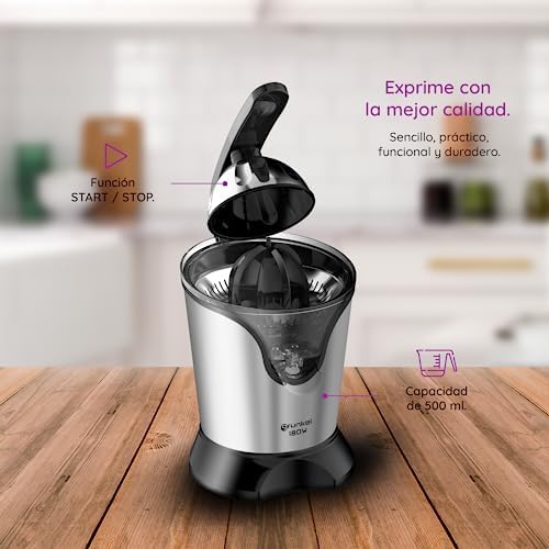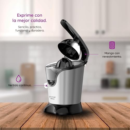 Grunkel – Exprimidor de naranjas o cítricos Eléctrico – XP-200 PAD – Filtro de Pulpa, Función Start & Stop y Mango con Revestimiento – 180W – Acero Inoxidable