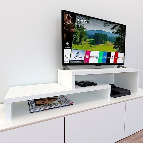 Henor Mueble TV Escalera Ajustable de Madera FSC® 90+90 x 35 x 30/15 cm Blanco