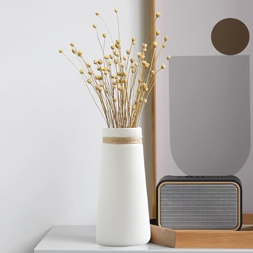 HOMURY Jarrón de cerámica blanco: jarrón de cerámica para hierba de Pampas, jarrón de cerámica para boho, jarrón decorativo boho, jarrón alto blanco mate, jarrón de flores para decoración bohemia,