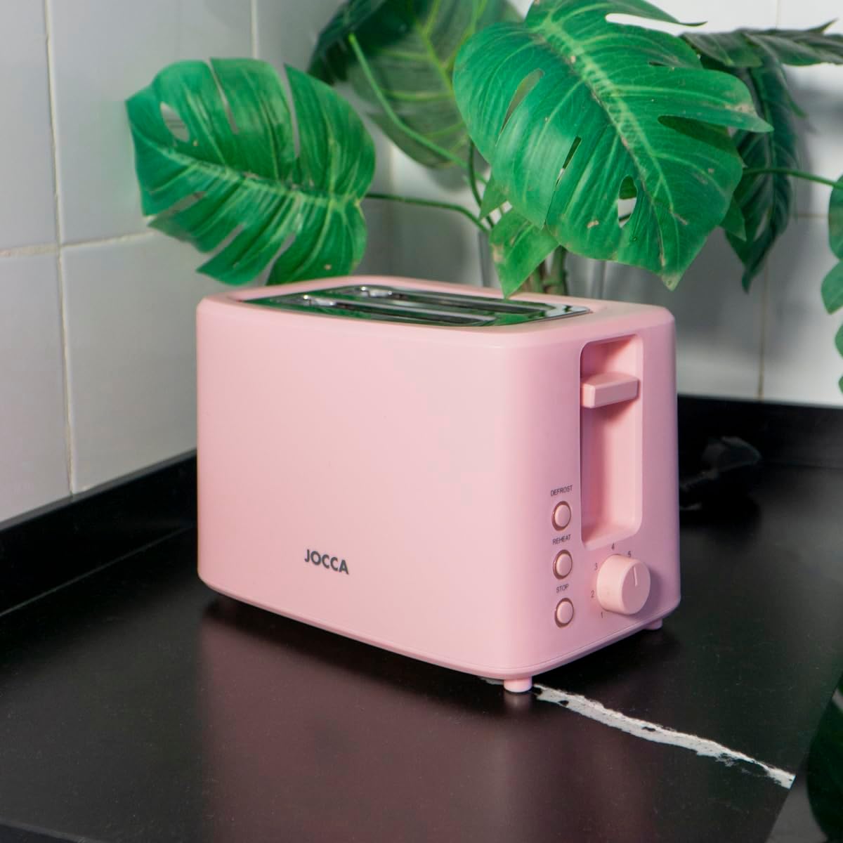 JOCCA – Tostadora 2 Rebanadas, Tostador Línea Sweet Rosa| 7 Niveles de Tostado| Función Descongelar, Recalentar y Cancelar| Recogemigas| Ranuras anchas para distintos tipos de Pan, Bollería| 700W