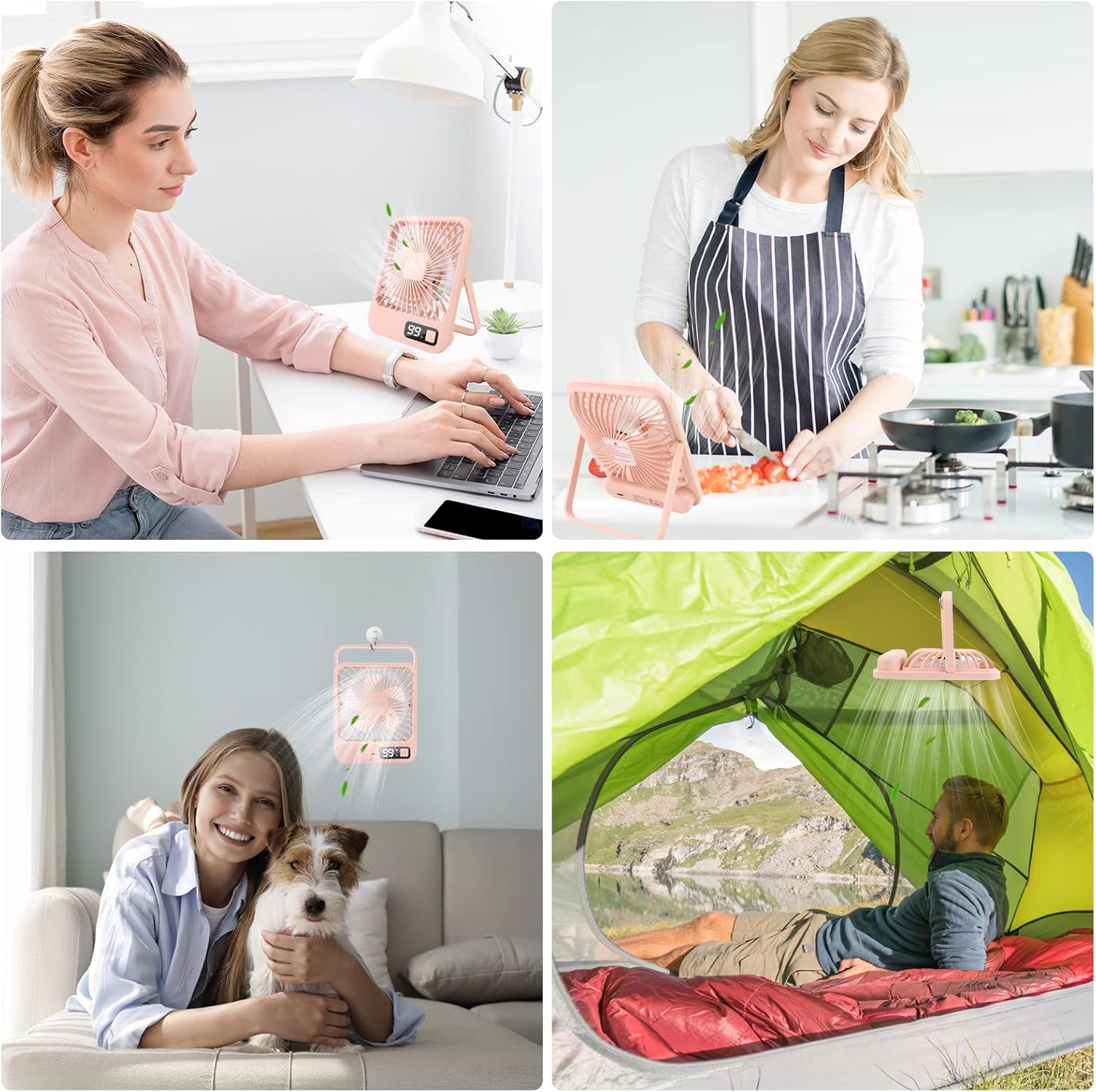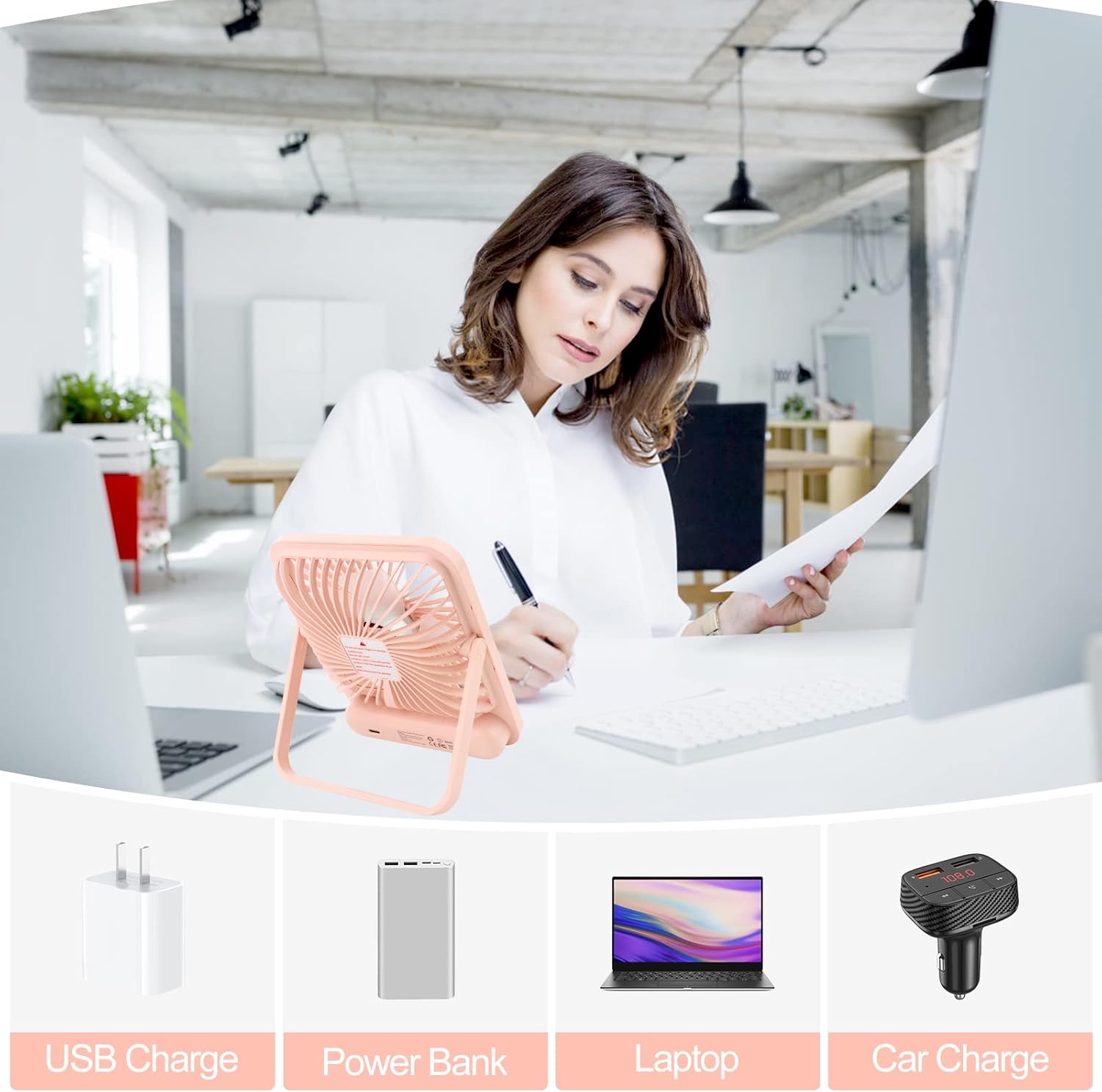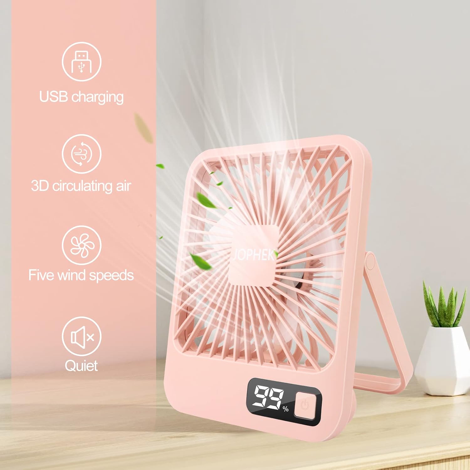 JOPHEK Ventilador USB, 3000mAh Ventilador Portatil Ventilador de Mesa – 5 Velocidades Mini Ventilador Silencioso Para Oficina, Hogar, Viajar, Acampar (Rosa)