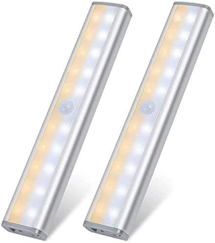 Lixada 2PCS Luces del Gabinete con Sensor de Movimiento USB Recargable 20 LED Gabinete Iluminación Magnética Extraíble Adhesiva para Escalera Armario Cajón Luz Blanca Cálida