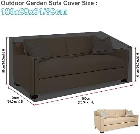 ►【Tamaño de la funda para sofá de jardín】180x99x61/89cm, proporcionando una cobertura y protección completa a la mayoría de los sofás de exterior de 2-3 plazas, como sofá lounge, sofá de ratán, sofá de patio, sofá seccional, banco de jardín y sofá de jardín. No sólo puede proteger su sofá vacante del agua y el polvo, sino también no obstaculizar la belleza de su sofá.