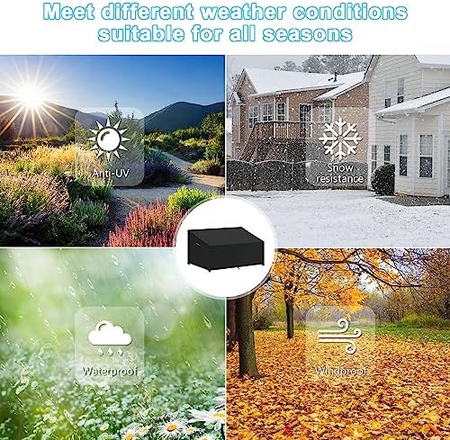 ►【Material de alta calidad】Hecho de tela oxford de alta resistencia con bordes encuadernados de doble costura, que es resistente al agua, resistente al desgarro, resistente a los rayos UV y resistente a la decoloración. La tira impermeable se agrega a la sutura superior para evitar fugas de agua; los revestimientos dobles internos hacen que la cubierta de sofá del jardín sea más impermeable y Anti-UV.