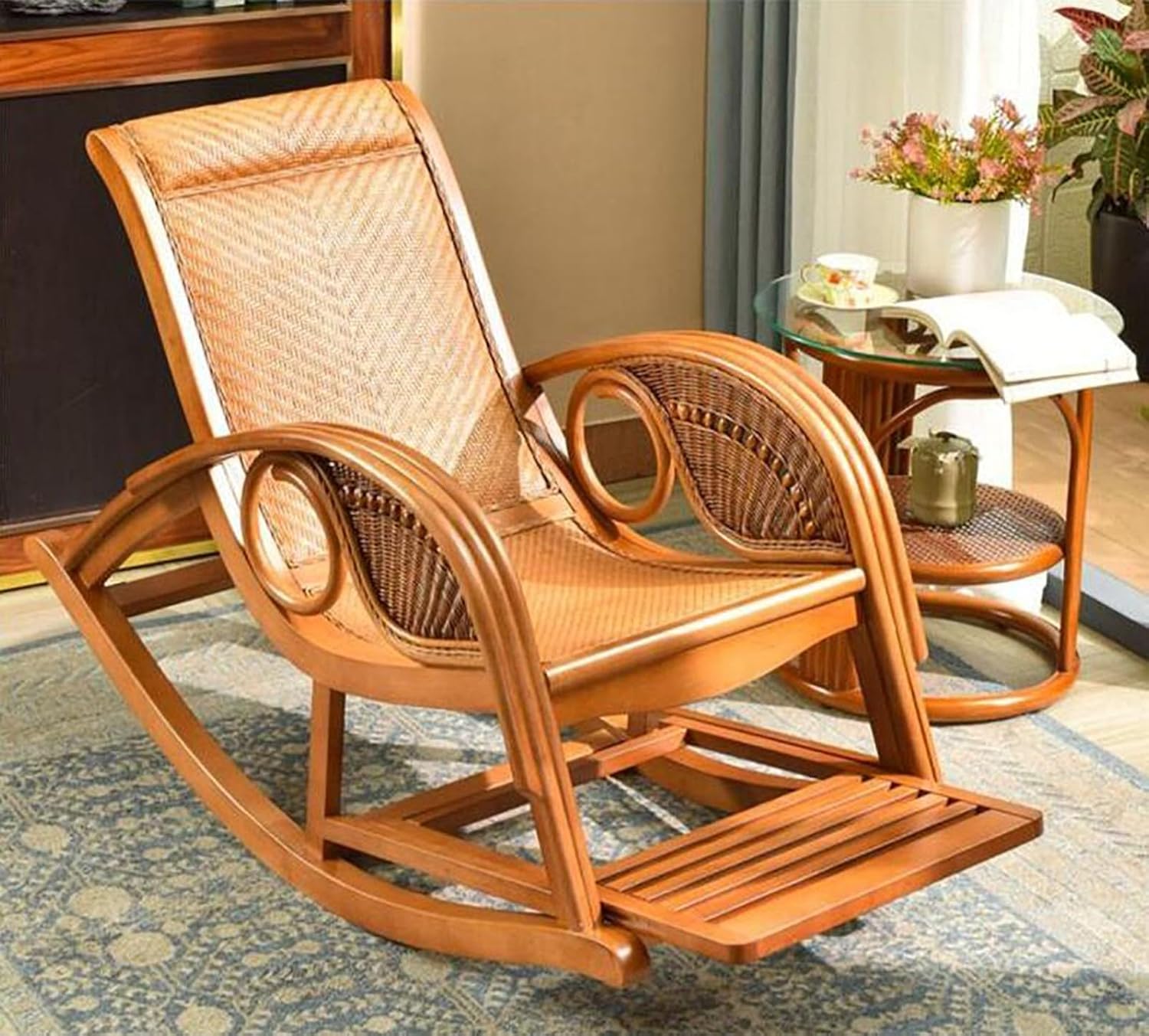 Mejore su espacio al aire libre con nuestra mecedora giratoria para patio. Fabricada con madera maciza y ratán, esta silla no se oxida, agrieta ni decolora, lo que garantiza años de belleza y funcionalidad en su patio o espacio interior.