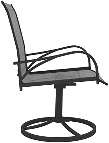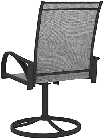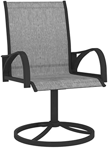 Sillas giratorias de jardín al aire libre 2 piezas de textileno y acero gris muebles > Muebles de exterior > Asientos al aire libre > Sillas al aire libre Disfruta de una cena perfecta o una hora de café por la tarde en este juego de 2 sillas giratorias de jardín justo en tus propias áreas exteriores Estas sillas están hechas de marco de acero con recubrimiento en polvo, resistente al óxido y a la intemperie. Tejido textileno transpirable, bien ventilado y de secado rápido. La base redonda giratoria de 360 grados y el soporte ergonómico de la espalda y los brazos curvados te dan una mejor experiencia de usuario y comodidad de descanso.