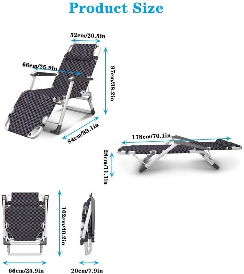 Plegable: nuestro sillón reclinable se puede plegar fácilmente, por lo que se puede transportar y almacenar fácilmente de forma compacta. Es una opción ideal para relajarse al aire libre (tamaño de uso: 178 x 66 x 28 cm, tamaño de plegado: 97 x 66 x 20 cm).
