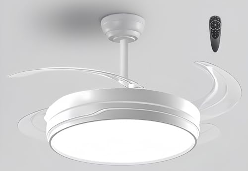 Ventilador techo con luz 55W Ventilador Invisible Ultra Silencioso con Mando a Distancia y Palas Retráctiles Interiores Plafón lluminación