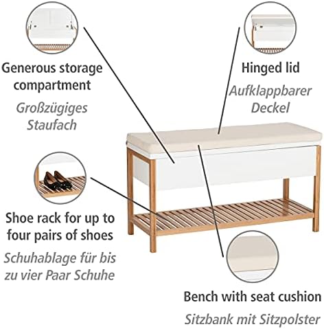 Be the first to review “WENKO Finja Zapatos con Compartimento, Banco con Espacio de Almacenamiento, Zapatero y Asiento Acolchado, Bambú Madera de ingeniería Algodón, Naturaleza, 90 x 52 x 35 cm”